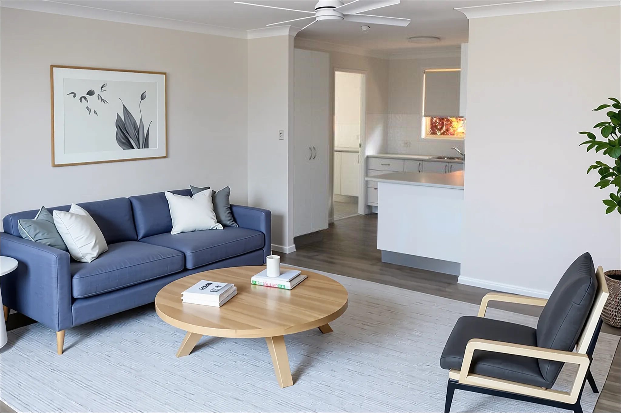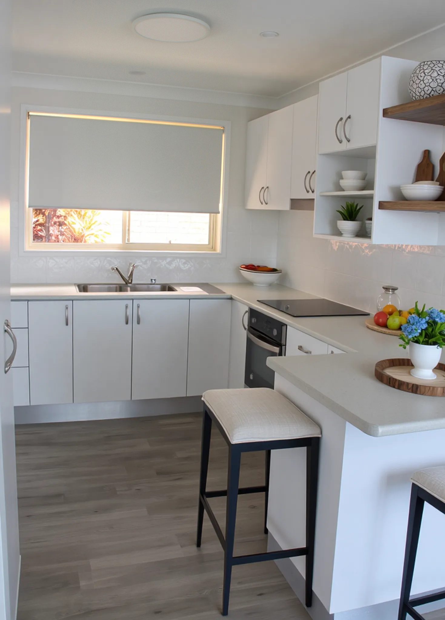 Enjoy light-filled, open-plan living with fresh paint and new flooring throughout. The modern kitchen offers stone benchtops and generous storage, while both bedrooms include built-in wardrobes.