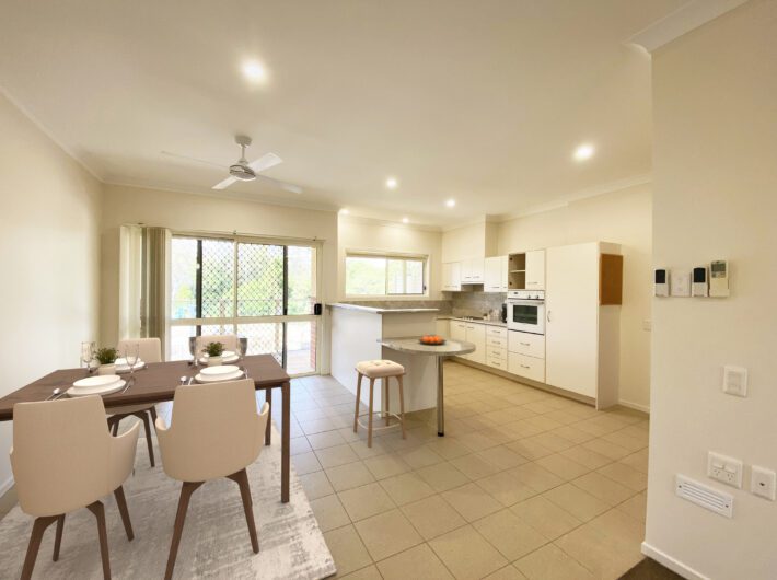 The north-east facing design captures natural light, creating a warm and welcoming atmosphere. Additional features include a large laundry, remote-controlled garage with internal access, split system air conditioning, and an emergency call system for peace of mind.